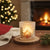 Karácsonyi üveg mécsestartó 10x9 cm - erdei ház havas.