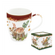 Vidám ajándék macskásoknak: Cicás porcelán bögre tetővel fém szűrővel 360 ml.