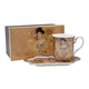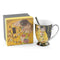 Klimt porcelán bögre kanállal - 280 ml - The Kiss fekete hátérrel.