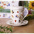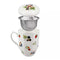 Porcelán bögre tetővel, fémszűrővel és aljjal, erdei gyümölcsös mintával. Tökéletes kedvenc leveles teád elkészítéséhes és elfogyasztásához.