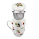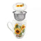 Porcelán bögre tetővel, fémszűrővel és aljjal, napraforgós mintával. Tökéletes kedvenc leveles teád elkészítéséhes és elfogyasztásához.