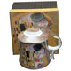 Ez a szett egy porcelán teás bögrét tartalmaz fém szűrővel és porcelán tetővel.