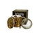 Gustav Klimt ihlette arany-barna hordó alakú Porcelán bögre, Életfa mintával, fém szűrővel és porcelán tetővel.