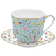 A csészéket és a csésze aljat fekete alapon vintage hangulatú dús rózsa virágok díszítik. Nagyszerű választás a délutáni romantikus teázáshoz.