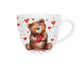 Valentin napi porcelán bögre piros szíves lufik, 460 ml, papír díszcsomagolással, mely a bögrére illeszthető.