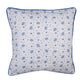 Minőségi pamut fehér színű asztali futó, melyet bájos kék apró rózsák díszítenek.