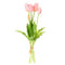 Vidám színű, halvány rózsaszín árnyalatú műtulipán csokor, amely friss tavaszi hangulatot varázsol az otthonba. Az 5 szálból álló, 40 cm magas csokor természetes hatású levelekkel készült, így önmagában vagy vázában elhelyezve is dekoratív. Tartós, gondozásmentes virágdekoráció, amely egész évben megőrzi szépségét. Ideális választás nappaliba, étkezőasztalra vagy ajándéknak is.