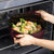 A rozsdamentes acél fogantyú arany PVD bevonattal van ellátva, amely nemcsak esztétikus, hanem praktikus is, hiszen nem melegszik fel. Az edzett üveg fedő hőálló szilikon kialakítással rendelkezik, amely könnyen záródik, így az ételek ízei és aromái megmaradnak.