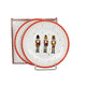 Ez a különleges lapostányér egy klasszikus karácsonyi motívumot ábrázol, a diótörő figurákat, amelyek méltán népszerűek az ünnepi időszakban. A fehér porcelán tányér közepén három elegánsan díszített diótörő katona sorakozik, gazdagon kidolgozott ruházattal, hagyományos piros, fekete és arany színekkel. A tányér szélét piros-fehér csíkos minta övezi, amely további arany csillagokkal és pöttyökkel egészül ki, ünnepi hangulatot árasztva.