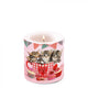 Cuki cicás átvilágítós viasz gyertya, amelyen kis cicák szív dekorral díszített csészében láthatóak.