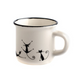 Ugráló fekete cicás porcelán kávés bögre, fekete csíkkal a peremén.
