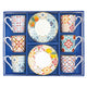 Porcelán 2 személyes teás csésze szett aljjal, Siracusa. A szett 2 különböző, de egymáshoz illó 240 ml teás csészét tartalmaz, aljjal.