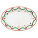 A tál peremét ünnepi minták díszítik, amelyek piros masnikkal átkötött fenyőágakból és arany csillagokból állnak, kiemelve a karácsony meghittségét.