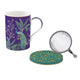 Ez az egyedülálló bögre szett a pompás pávamotívummal és egzotikus növényi mintákkal díszített, gazdag, mély színekben pompázik.