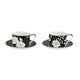 Porcelán nagy reggeliző csésze aljjal Coffee Mania Art Deco & Flowers. A csészét sötét alapon ragyogó virág minták díszítik, Art Deco stílusban.