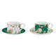 Virágos porcelán eszpresszó kávéscsésze aljjal 6 db szett díszdobozban, az olasz Easy Life Botanic Chic kollekcióból.
