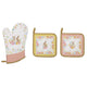 A pamut anyag kellemes tapintású és strapabíró, a praktikus méret pedig kényelmes fogást biztosít sütés-főzés közben. Tökéletes kiegészítője a Provence stílusú konyhai textíliáknak, és ajándéknak is remek választás.