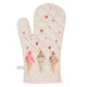 Ezt az edényfogó kesztyűt retro tölcséres csavart fagyik, és szívecskék díszítik. Vidám, nyári hangulatot varázsol otthonodba, konyhádba.