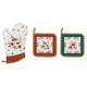 Vintage stílusú kék virágos konyhai kötény edényfogó kesztyűvel szett.