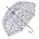 Cicás esernyő átlátszó, piros, fekete macskás dekorral.