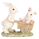 Vidám, bájos, húsvéti dekoráció figura vidéki stílusban, Fehér nyuszi tulipános esernyővel.