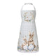 Nuvole di Stoffa pamut asztali futó a PePen kollekcióból. A húsvéti minta egy édes nyuszit ábrázol tavaszi virágok között, dísztojásokat és egy pillangót, mindezt zsályazöld kockás háttér előtt, finom virágos szegéllyel. A pasztell árnyalatok és a matt felület elegáns shabby chic stílust kölcsönöznek.