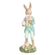 Vidám, bájos, húsvéti dekoráció figura vintage stílusban, Nyuszi csészében órával.