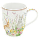 A virágokkal és nyuszikkal díszített étkészlet autentikus húsvéti hangulatot áraszt, és kiválóan illeszkedik a tavaszi szezon ünnepi eseményeihez.