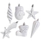 Ez a 6 darabos karácsonyfa gömbdísz készlet tökéletes választás, ha elegáns és klasszikus hangulatot szeretnél teremteni az ünnepi dekorációban. A gömbök fehér és ezüst színűek, különböző mintákkal és felületekkel, így változatosságot hoznak a karácsonyfádra. Méretük 6-8 cm, ami ideális arányt biztosít a harmonikus díszítéshez.