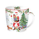 Joyful Santa karácsonyi porcelán bögre 2 személyes szett. A bögréket vidám, mókázó télapó és karácsonyi motívumok díszítik, háttérben havas erdei tájjal.