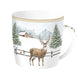 Magie de Noel porcelán bögre 2 db szett díszdobozban. Az egyik bögre ballerina, a másik hintaló motívummal díszített. A bögre peremét ünnepi minták díszítik, amelyek piros masnikkal átkötött fenyőágakból és arany csillagokból állnak, kiemelve a karácsony meghittségét.