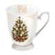 Finom porcelánból készült nagy, téli tájjal, karácsonyfával, állatokkal díszített bögre, hozzáillő négyzet alakú papír díszdobozban.