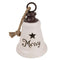 Ez a bájos, vintage stílusú karácsonyi harang igazi ünnepi hangulatot visz otthonodba. A „Merry” felirat elegánsan díszíti a fehérre festett felületet, míg a kötél akasztó természetes hatást kölcsönöz neki. Remekül mutat polcon, kandallópárkányon vagy akár ajtódíszként is.