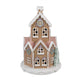 Ez a díszes rózsaszín, kék mézeskalács házikó hóemberrel karácsonyi hangulatot varázsol bármelyik szobába.