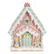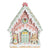 Ez a díszes rózsaszín, kék mézeskalács házikó hóemberrel karácsonyi hangulatot varázsol bármelyik szobába.