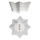 Diótörő karácsonyi porcelán tál Royal Nutcracker, fehér alapon arany és ezüst színű diótörőkkel és hópelyhekkel.