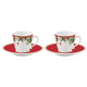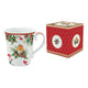Az ünnepi Christmas Berries porcelán bögre egy igazi gyöngyszem az ünnepi asztali díszítések között. A bögre dizájnja egyedi és varázslatos: az egyik bögrén a vörösbegy madár látható, a másik bögrén piros háttéren a bogyós magyal ág.