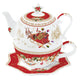 A porcelán gömb alakú keksztároló edényt különböző karácsonyi motívumok díszítik. A kiváló minőségű, hófehér porcelánon díszeleg az integető Mikulás a szánján, színes ajándékdobozok társaságában valamint különböző karácsonyi motívumok.