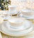 A tányér fehér porcelánból készül, ami a tisztaság és a szépség szimbóluma. A tányér diszkrét arany díszítésekkel rendelkezik, amelyek egyúttal az ünnep fényét és melegségét hozzák az asztalra.