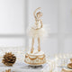 Körhinta alakú ló zenélő doboz 16 cm. Fehér és bézs színű gyantából készült körhinta alakú ló finom arany részletekkel, talapzaton. A zenélő doboz teljes magassága 16,5 cm, az alap kerülete 10,5 cm.
