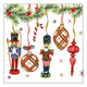 Diótörő a karácsony egyik népszerű motívuma. Ezen a vidám, mesét idéző, színekben pompázó szalvétán 3 különböző Diótörő figura látható.