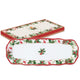 Az ünnepi Christmas Berries porcelán fenyő alakú tálca egy igazi gyöngyszem az ünnepi asztali díszítések között. A tálca bogyós magyal ág és vörösbegy madár dizájnja egyedi és varázslatos:.