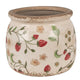 Bézs kerámia kaspó piros eper mintás motívummal rusztikus stílusban, Ø 20x15 cm.