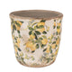 Bézs kerámia kaspó rózsaszín virág mintás, rusztikus stílusban, Ø 16x14 cm.