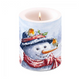 Téli, erdei hangulatot idéző, kalapján és répaorrán egy-egy vörösbeggyel hóembert ábrázoló díszítés.