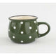 Nosztalgikus kerámia pöttyös bögre, fehér alapon piros pöttyökkel.