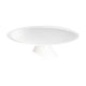Fehér kerámia talpas tortatál 29,5 cm átmérővel. A tortatál lapja teljesen sík felületű.