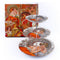 Az állvány finom vonalvezetésű, szecessziós mintázatait gazdag, meleg színek és aranyszegélyek díszítik, amelyek kifinomult és luxus megjelenést biztosítanak. Az egymásra helyezett, különböző méretű tányérok tökéletesen alkalmasak aprósütemények, falatkák vagy akár gyümölcsök stílusos tálalására.