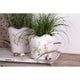 Kerámia virágcserép bézs rózsaszín rózsás dekorral, fodros szélű.