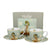 A fehér porcelánból készült kollekciót Hölgy esernyővel című festmény reprodukciója díszíti.